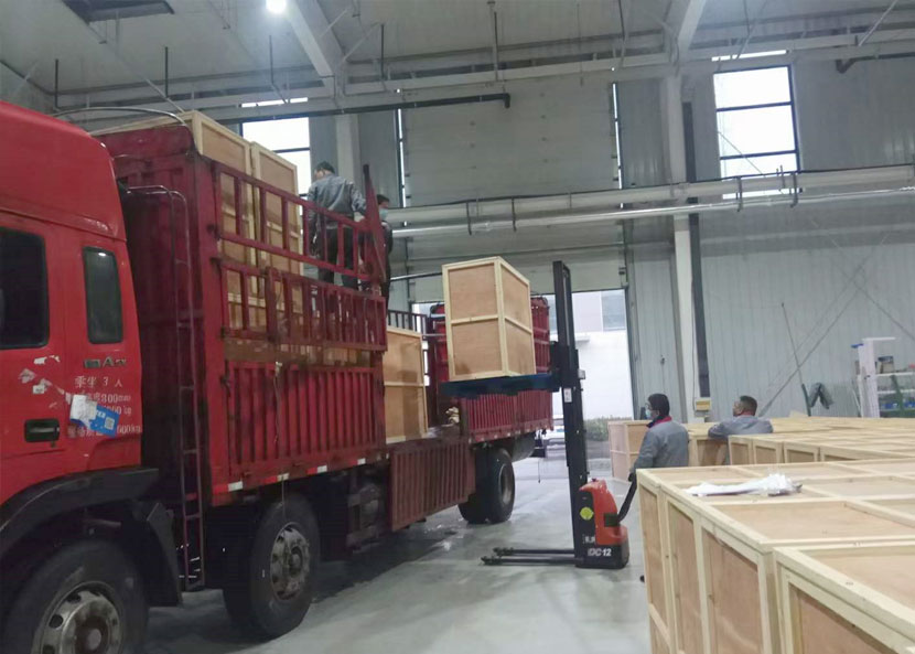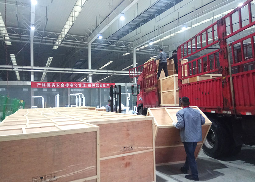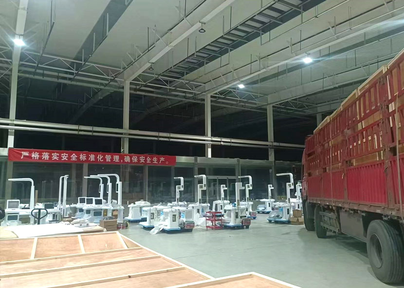 每一臺體檢機都由獨立大型木質(zhì)包裝箱嚴(yán)格密封,以此保證運輸過程中設(shè)備完好,順利抵達客戶端。夜間,工人們正在加班裝車搬運中....