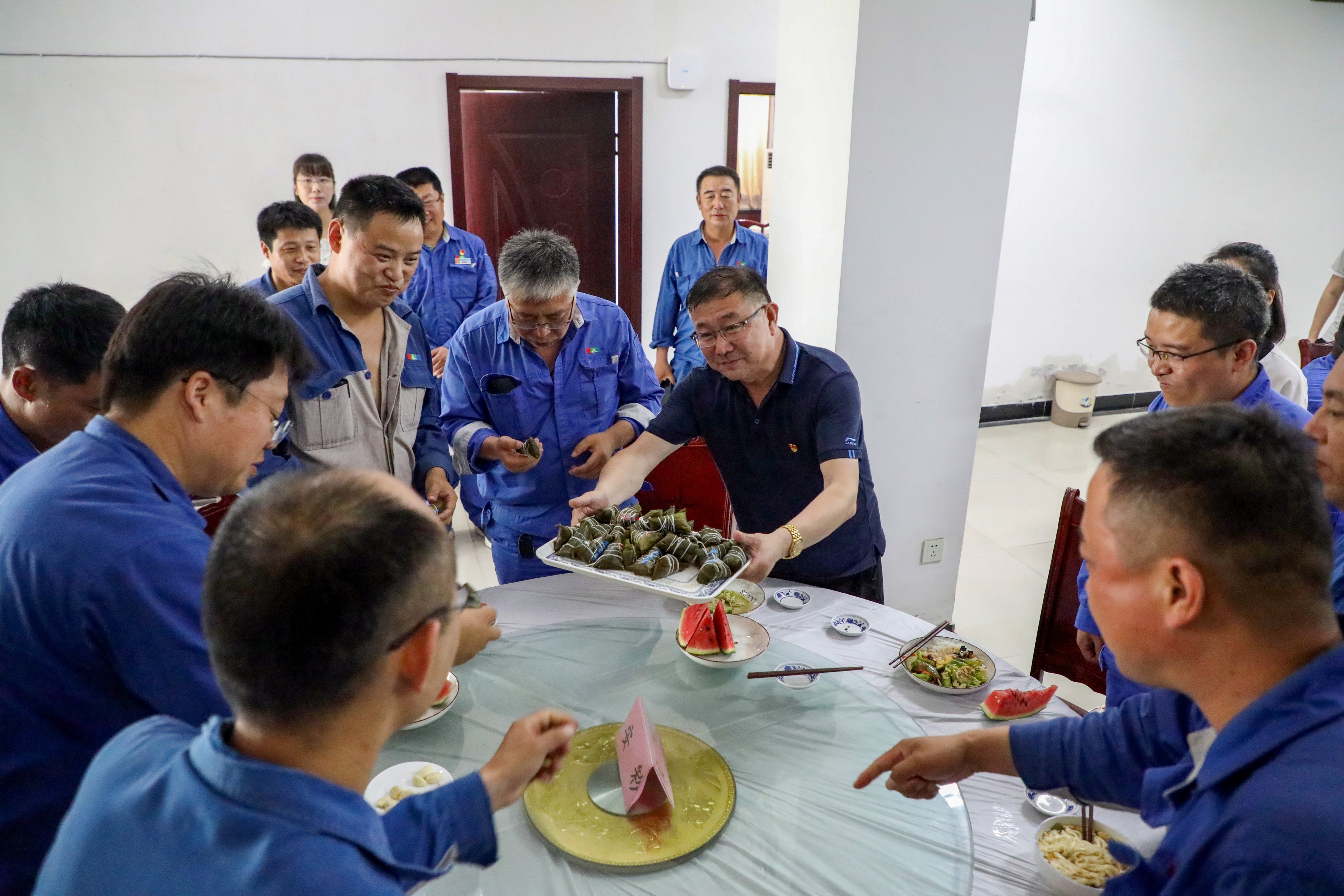 為搶抓工期、趕超進(jìn)度,安彩焦作項目部建設(shè)人員的端午節(jié)將在堅守崗位中度過。中午,呂書記來到餐廳,為前來就餐的職工送上粽子,把公司黨委和工會的溫暖送到職工們的心坎上,讓每一位遠(yuǎn)在異鄉(xiāng)的職工都感受到公司“大家庭“的關(guān)心和節(jié)日的問候,大家深受感動和鼓舞。